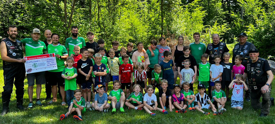 Besonders hervorzuheben ist, dass die Biker der Saar-Pfalz Stromer, welche im VB Heim ihren Clubraum haben, uns am Samstag einen Besuch abstatteten und uns einen Check über 1000 € für die weitere Jugendarbeit unserer Jugendabteilung SG TUS Rimschweiler VB Zweibrücken überreichten. Zudem durften die Kids die Motorräder begutachten, was auf reges Interesse stieß. Diesen Saisonabschluss möchten wir als festen Bestandteil in unserem Jugendkonzept etablieren und freuen uns schon auf das nächste Jahr.